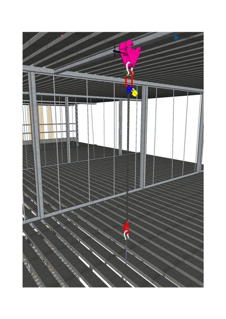 -> Levage de personne, typiquement une longe de sécurité pour acrobate. - En contre-balancée, afin de pouvoir suspendre (à l’aide d’une commande) une charge à un moment, puis de la reposer, sans avoir à dépainter/repainter.