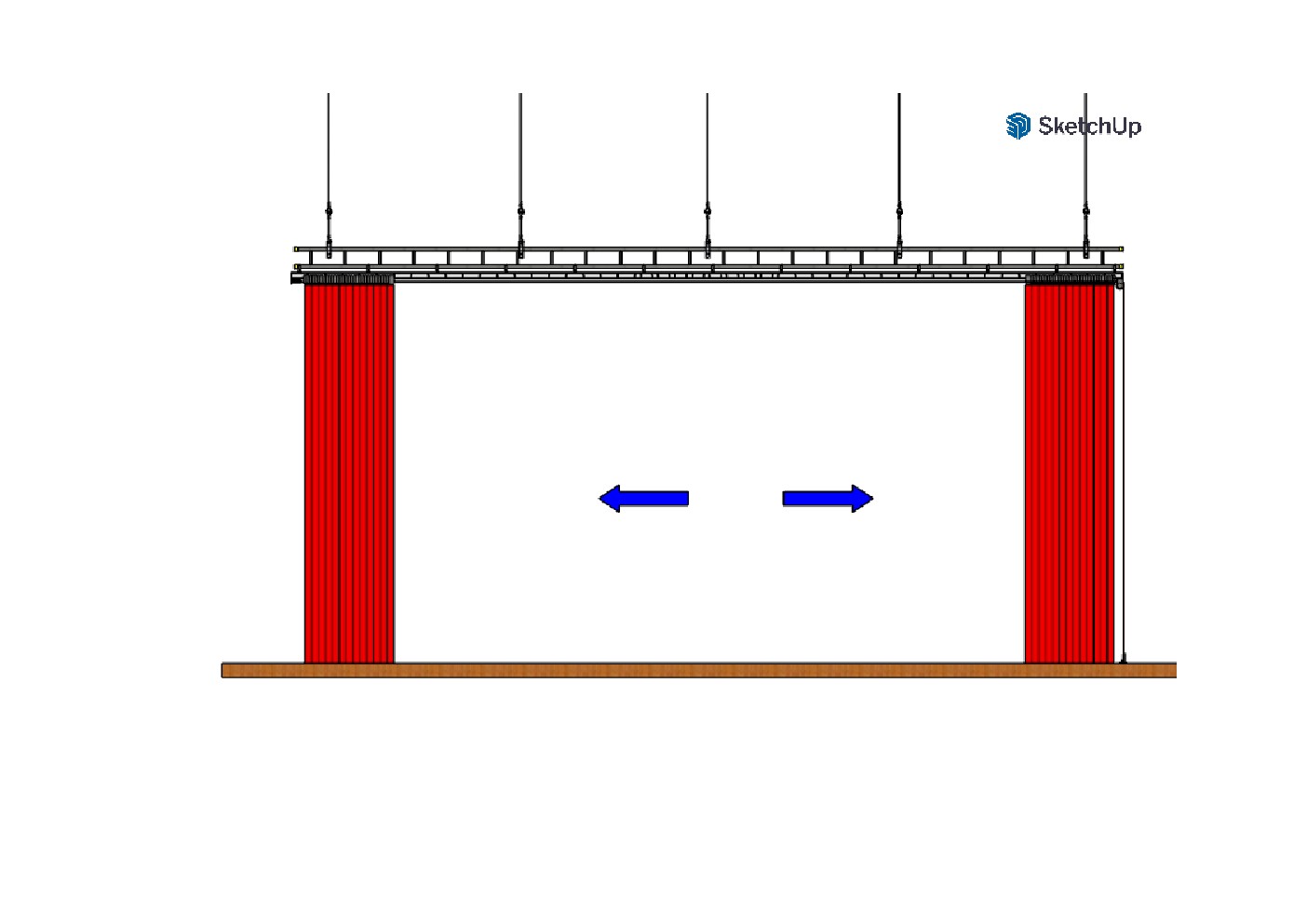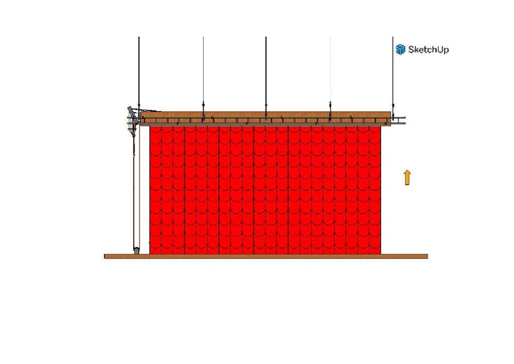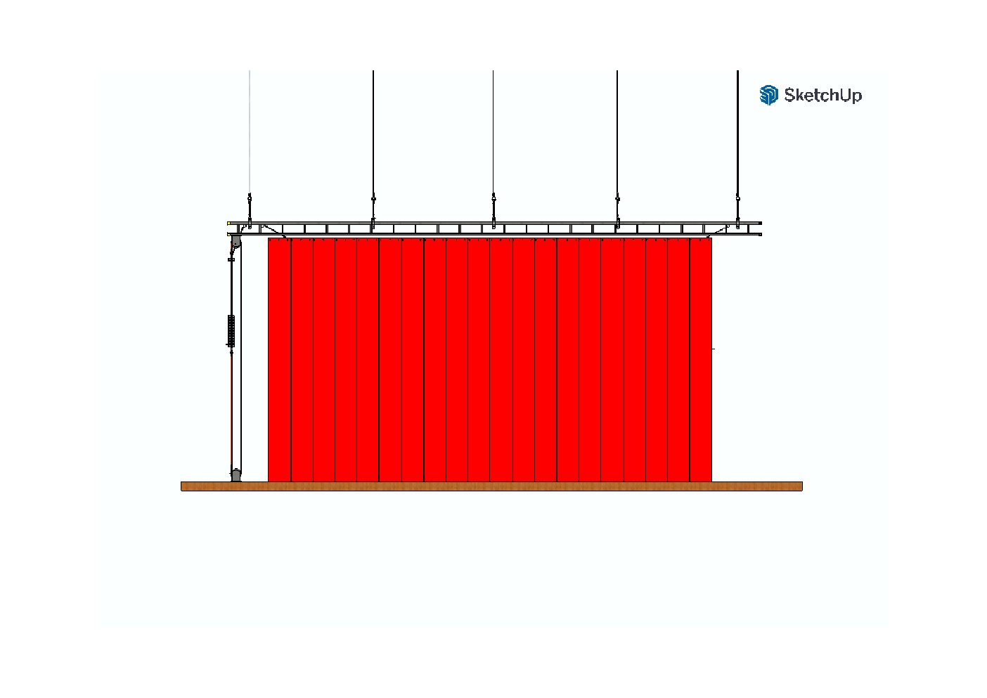 Rideau à plat avec levage vertical par le bas (tendu ou souple)