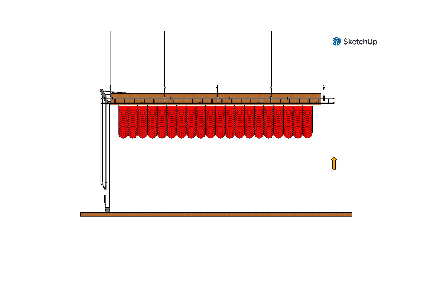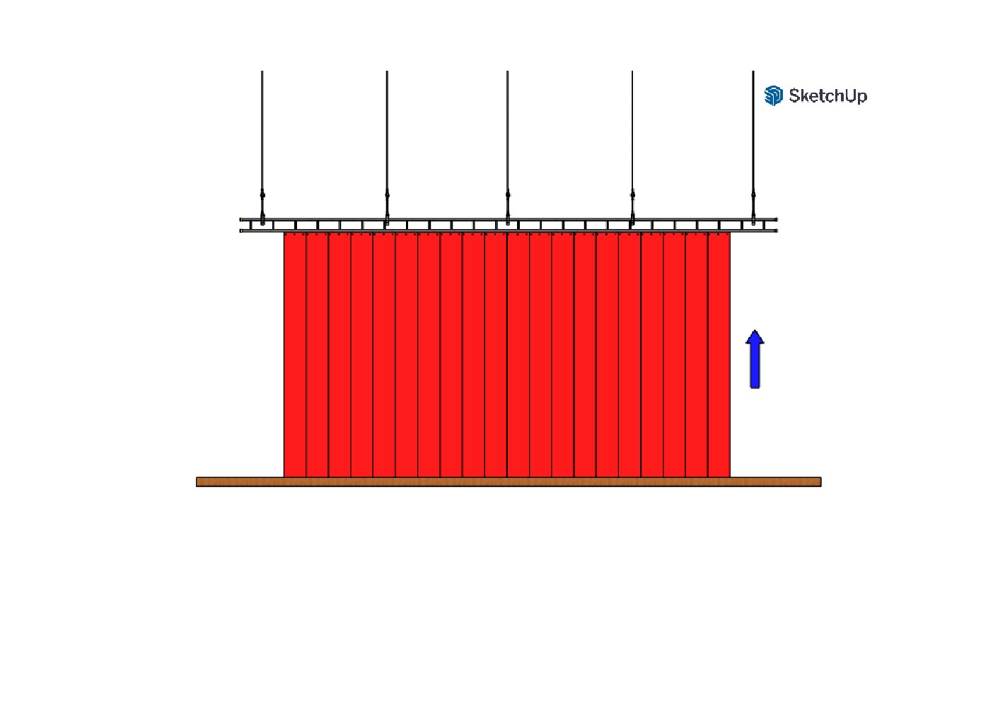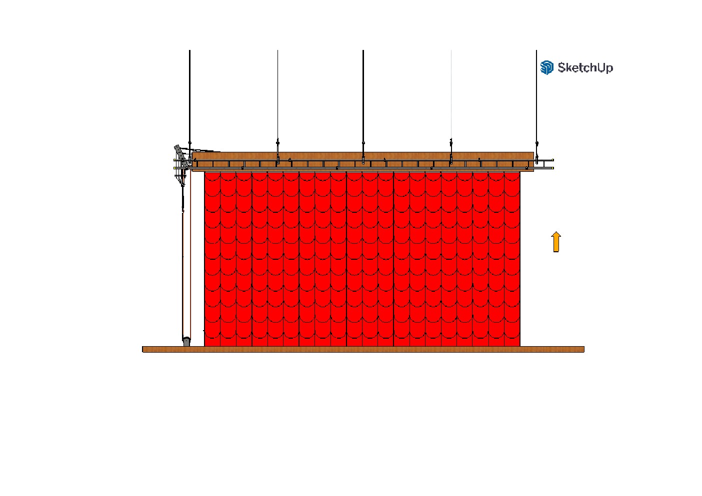 Rideau à plat avec levage vertical par le bas (tendu ou souple)