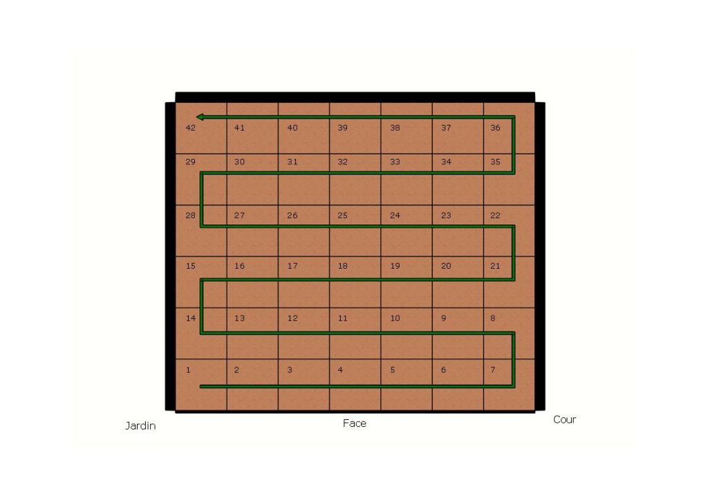 - Suivre l’ordre de montage définit par la numérotation et les consignes du ou de la régisseur·se plateau ou personne en charge de les transmettre.