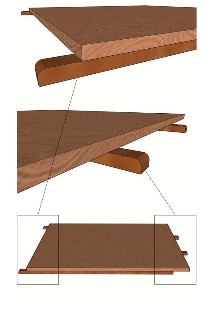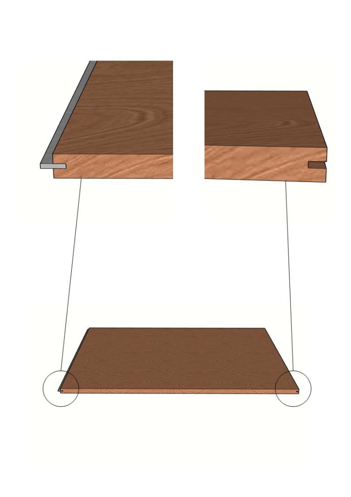 - Vérifier la jonction entre deux parties. Avoir toujours le même “jour” permet une pose du plancher plus juste et plus simple en évitant des multiples retouches. Certains modes d’assemblages facilitent cette étape (Grenouilles, voir dessin ci après)