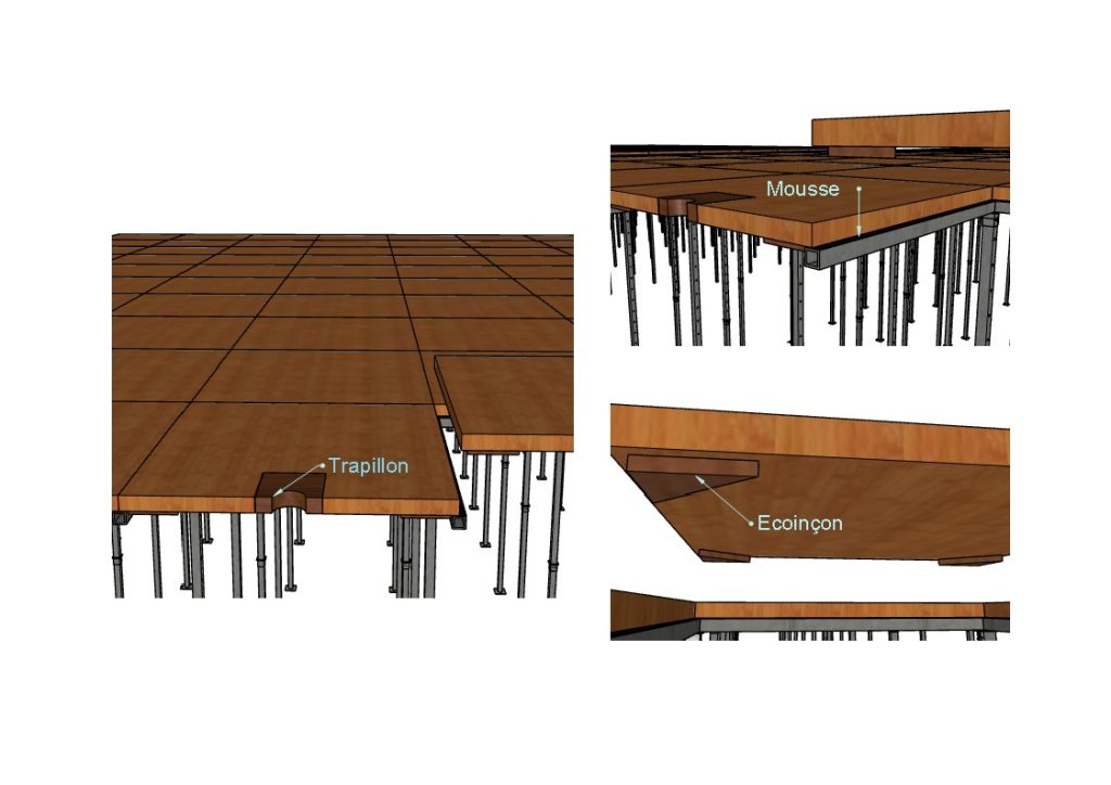 Il est parfois nécessaire de renforcer un plancher lorsqu’un décor, une manutention dépassent les charges d’exploitation donnée.